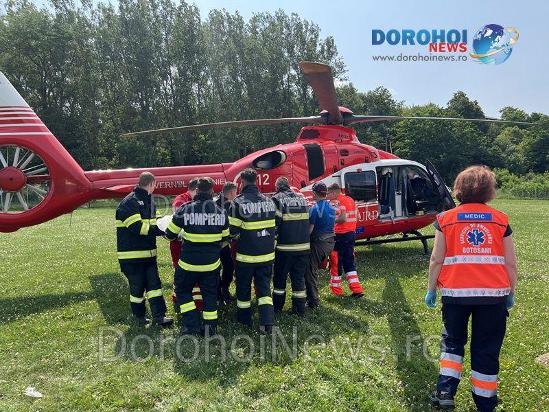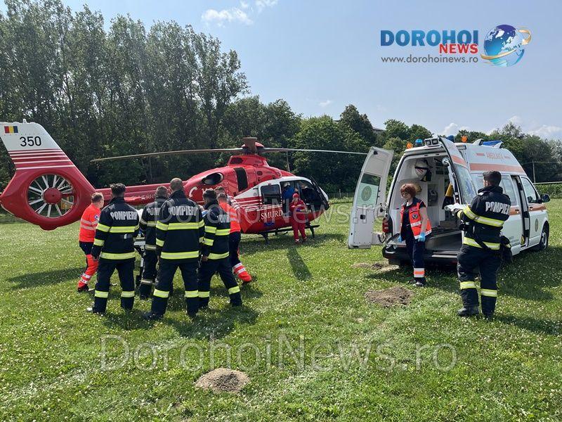 Bărbatul a ajuns la Spitalul Municipal Dorohoi cu Traumatism Cranian Cerebral, cu hemoragie subarahnoidiană. Medicii l-au stabilizat, l-au intubat și au solicitat elicopterul SMURD care să îl transfere la o clinică de specialitate din Iași.