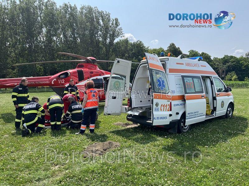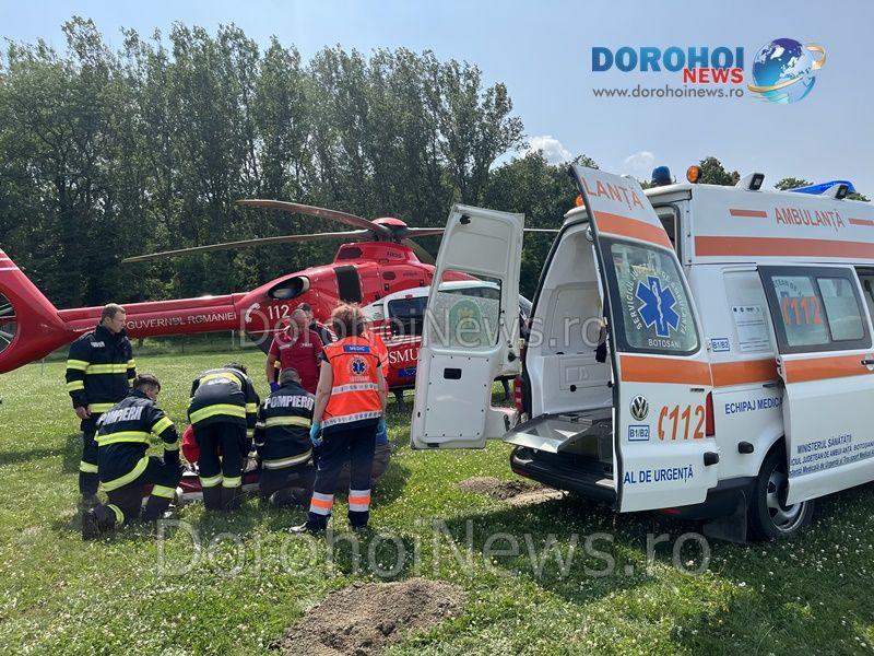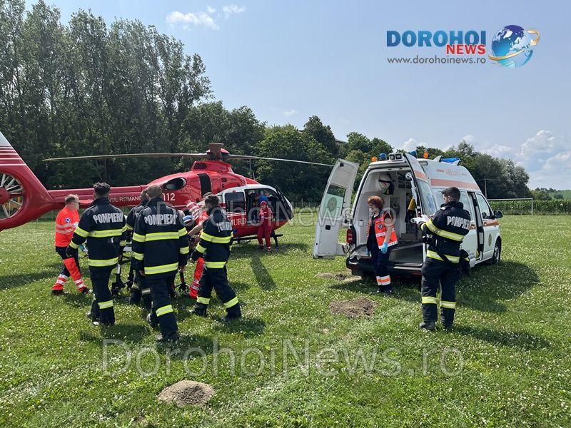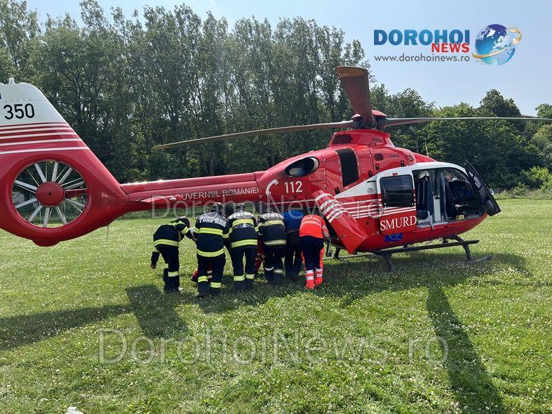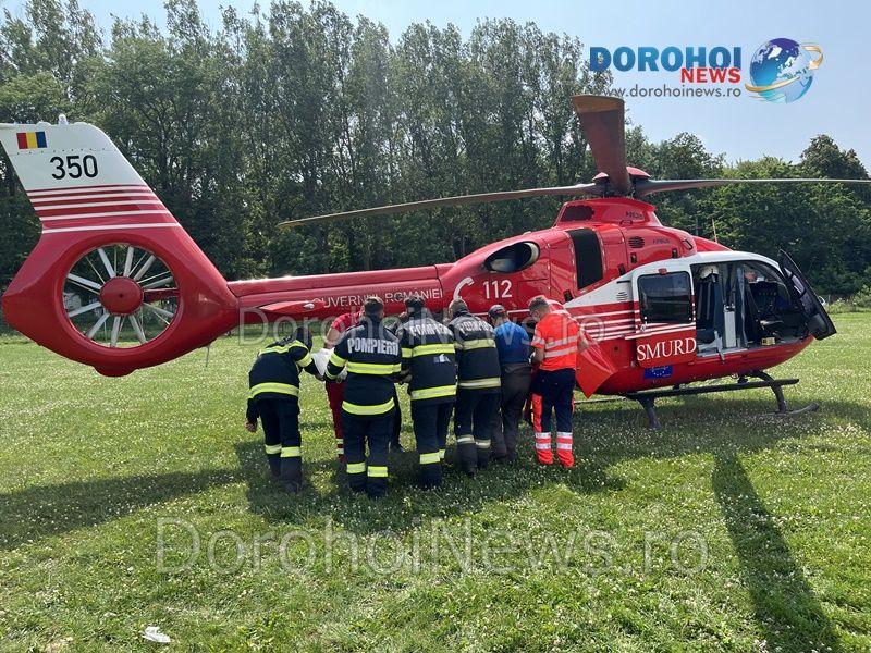 Elicopterul SMURD a fost solicitat vineri, 14 iulie 2023, pentru a prelua un bărbat, în vârstă de 65 de ani, din comuna Cândești.