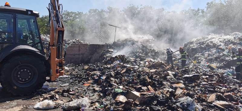 Peste 27 de tone de deșeuri plastice, reciclabile și gunoi menajer au ars în după-amiaza zilei de sâmbătă, 5 august 2023, în localitatea Satu Nou.