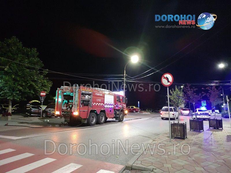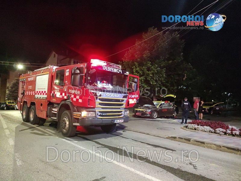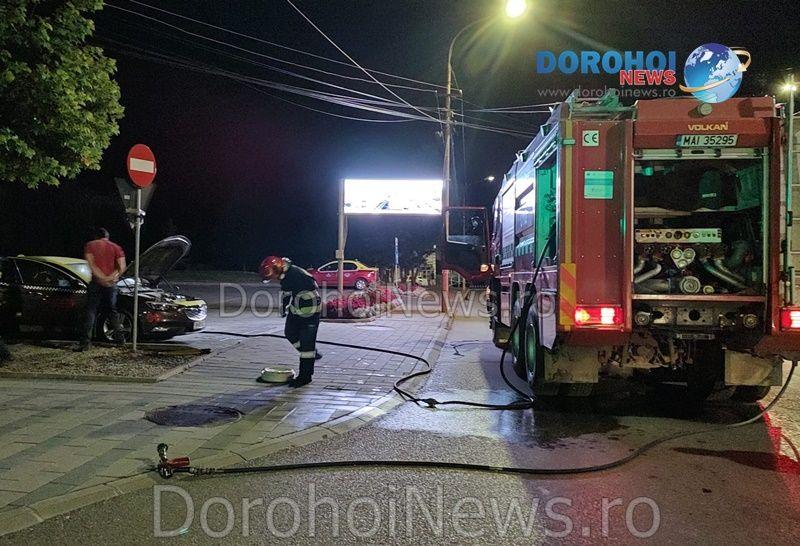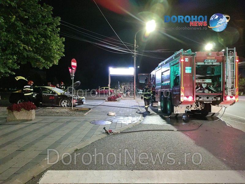 La caz s-a deplasat un echipaj din cadrul Detașamentului de Pompieri Dorohoi, cu o autospecială de stingere cu apă și spumă. Pompierii au constatat faptul că ardea bordul mașinii și exista pericolul ca flăcările să se extindă la întregul autoturism, dar și la alte taxiuri parcate în zonă. Incendiul a fost stins în scurt timp.
