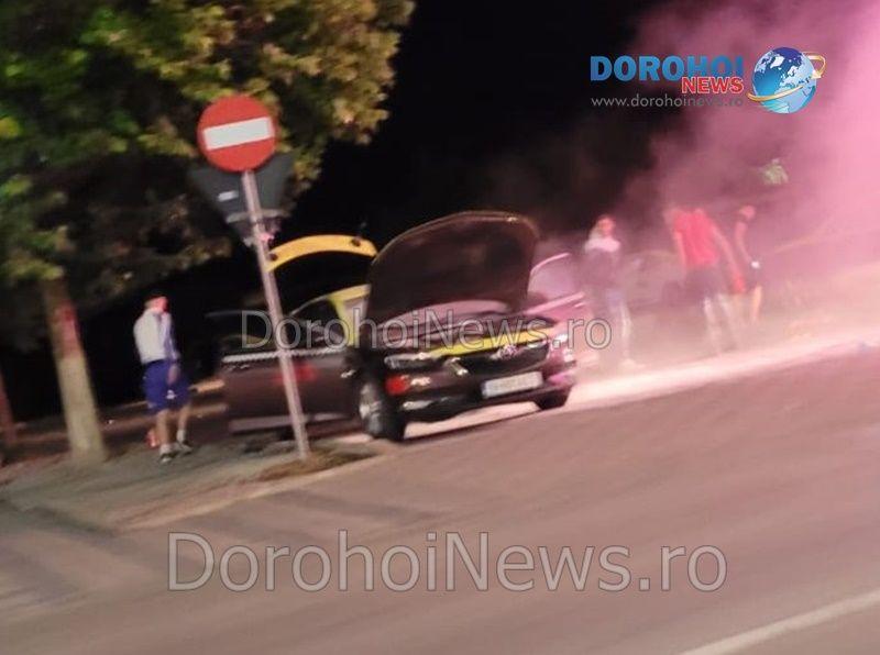 Un taxi a luat foc luni, 7 august 2023, în jurul orei 23:50, la scurt timp după ce a fost parcat în stația de taxiuri de vis-a-vis de Blocul Turn din Dorohoi.