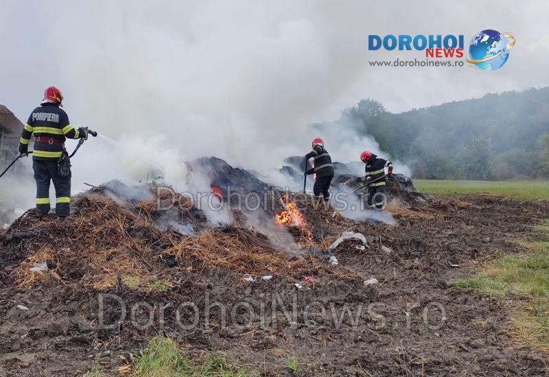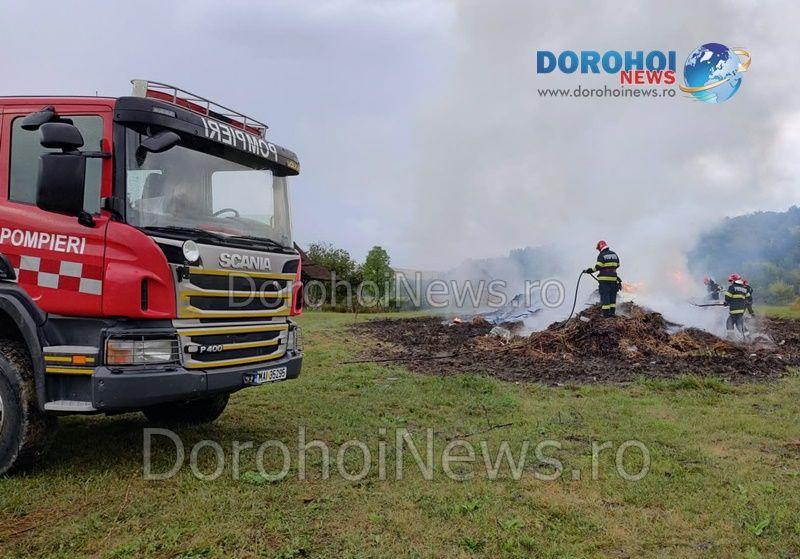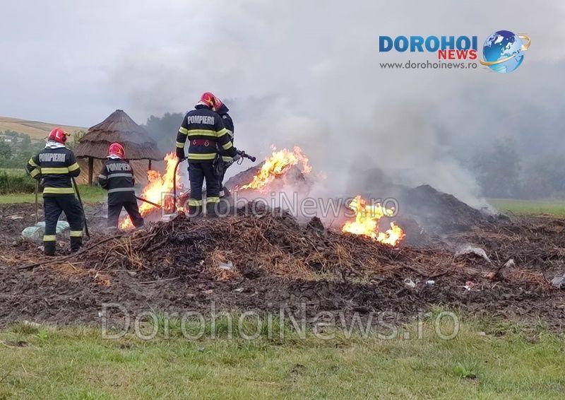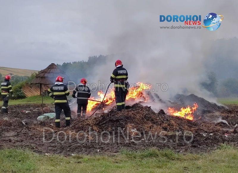 La locul intervenţiei s-a deplasat o autospecială cu apă şi spumă din cadrul Detașamentului de Pompieri Dorohoi, cu șase subofițeri. Pompierii au intervenit pentru localizarea şi stingerea incendiului izbucnit la aproximativ 15 tone de deșeuri vegetale. În urma incendiului nu au rezultat pagube materiale, pompierii au intervenit aproximativ două ore și jumătate pentru stingere.