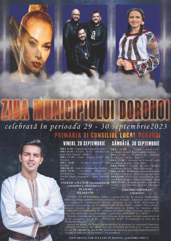 Primăria și Consiliul Local Municipal pregătesc un eveniment special în zilele de 29 - 30 septembrie și 06 octombrie sub numele de „Zilele Municipiului Dorohoi”, marcând astfel 616 ani de atestare documentară. Iată programul detaliat al acestor festivități: