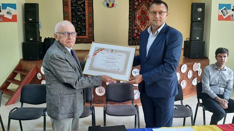 A urmat discursul d-lui primar care a oferit cele două distincții d-lui prof. Zaharia în calitate de inițiator al proiectului. Acesta din urmă le-a donat pentru a putea fi amplasate la loc de cinste în interiorul primăriei.