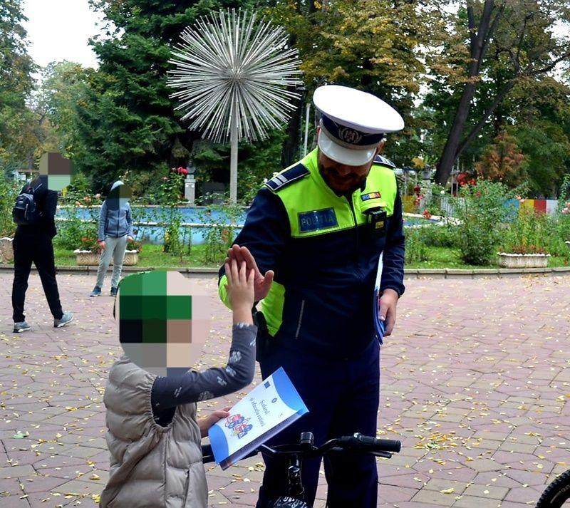 Având în vedere faptul că pe arterele pietonale circulă bicicliști, de cele mai multe ori, aceștia fiind în trecere, către alte zone și, din cauza vitezei de deplasare sau a neatenției, pot genera accidente rutiere în care să fie implicați pietoni, polițiștii Biroului Rutier, cu sprijinul Compartimentului de Analiză și Prevenire a Criminalității și a polițiștilor locali au organizat o acțiune de informare și prevenirea a unor astfel de incidente.