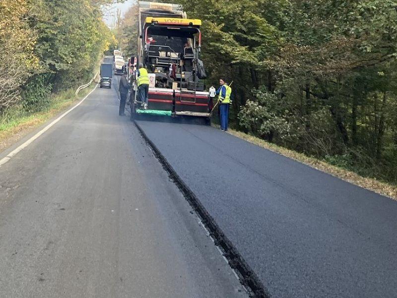 Pe un segment din Drumul Național 29B Dorohoi-Botoșani se efectuează lucrări de întreținere, prin turnarea unui strat nou de asfalt.