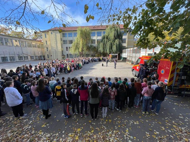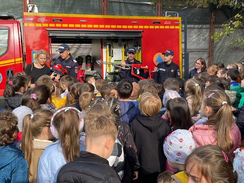 Prezenți la activitate, pompierii le-au transmis elevilor următoarele sfaturi în cazul producerii unui incendiu în incinta școlii: