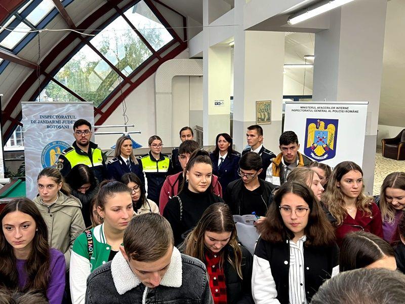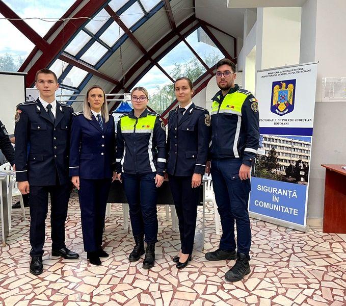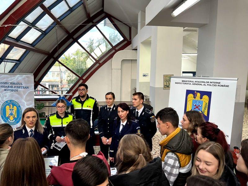 Polițiștii botoșăneni desfășoară permanent activități de promovare a profesiei de polițist, atât în cadrul evenimentelor publice, cât și în unitățile de învățământ liceal.