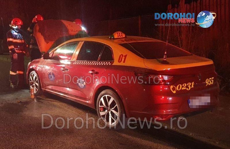 Un taxi a luat foc marți, 7 noiembrie 2023, în jurul orei 19:45, în timp ce se afla pe strada Ștefan cel Mare din Dorohoi.