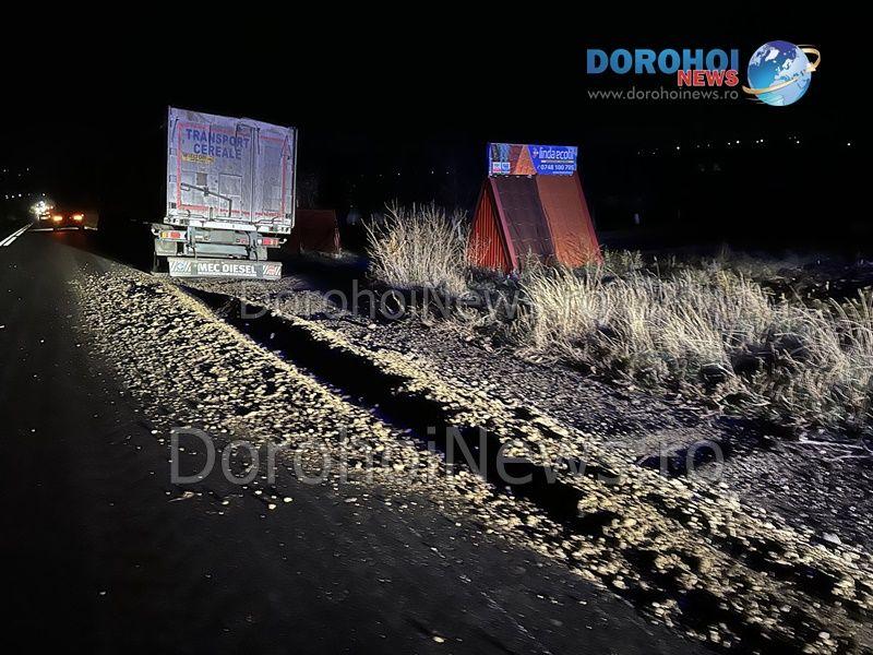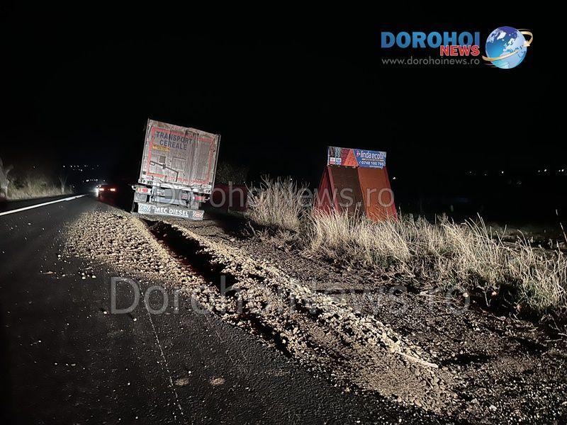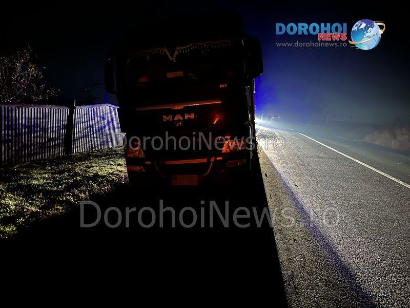 Din primele cercetări, se pare că un camion se deplasa pe drumul național 29B Dorohoi – Botoșani și, în apropierea intersecției cu drumul comunal 68D a încercat să evite un pieton angajat în traversarea drumului. Camionul a acroșat ușor pietonul, după care a ajuns în afara carosabilului, pe acostament. În urma impactului, pietonul a fost rănit ușor și transportat la spital cu o ambulanță SJA, sosită la fața locului.
