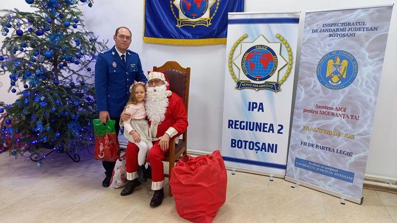Spectacolul, care a încântat audiența la sediul Inspectoratului de Jandarmi Județean Botoșani, a fost urmat de vizita surpriză a lui Moș Crăciun, sosit cu sacul încărcat de daruri pentru copiii cuminți.