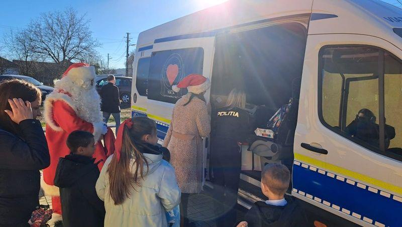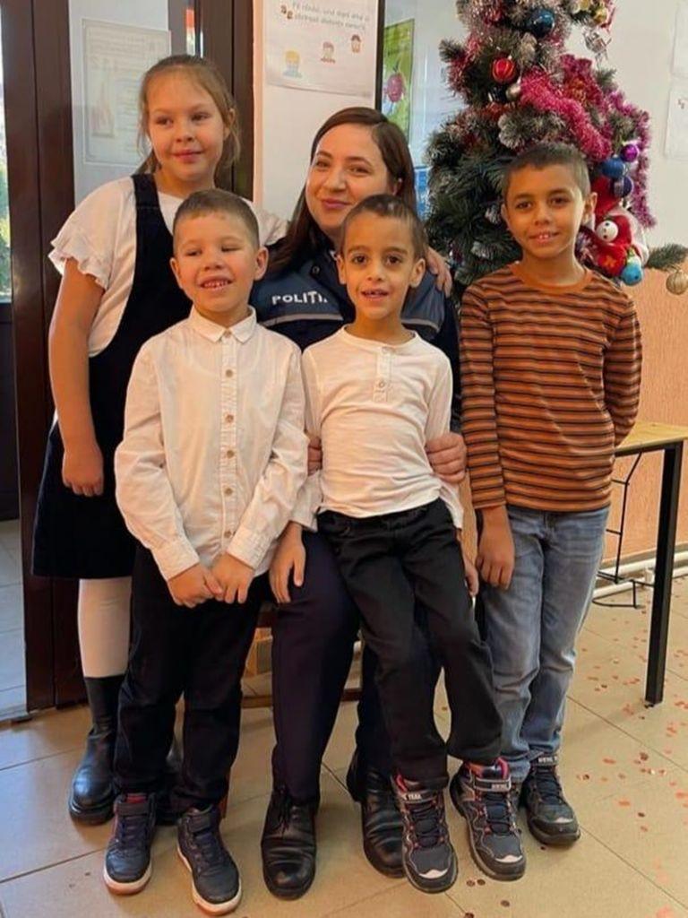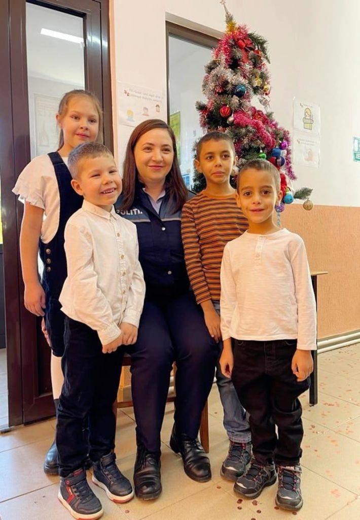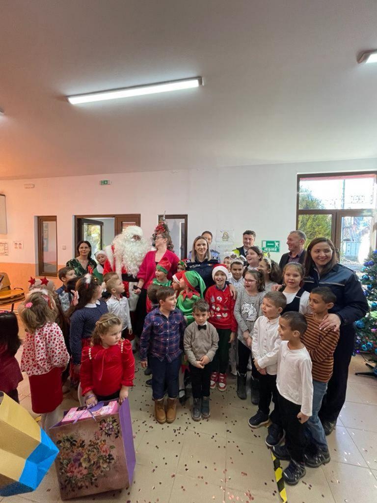Zilele acestea, cei patru copii ai săi, au avut parte de o activitate în care au putut să experimenteze bucuria de a dărui. Cu sprijinul polițiștilor, l-au dus pe Moș Crăciun, la elevii din cadrul Școlii Gimnaziale ”Andrei Popovici Bâznoșanu”, din comuna Lunca, care i-au întâmpinat cu colinde și urături.