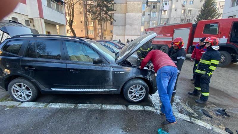 O mașină parcată pe strada Parcul Tineretului din municipiul Botoșani a fost cuprinsă de flăcări, în cursu. Un vecin al proprietarilor a observat că iese fum de sub capotă și a sunat după ajutor.