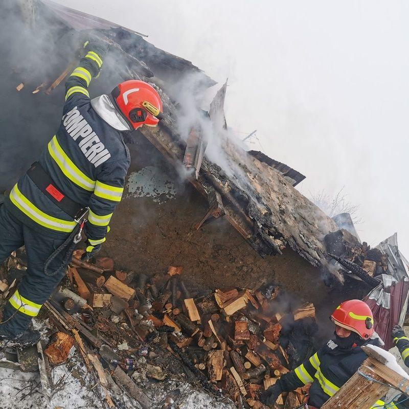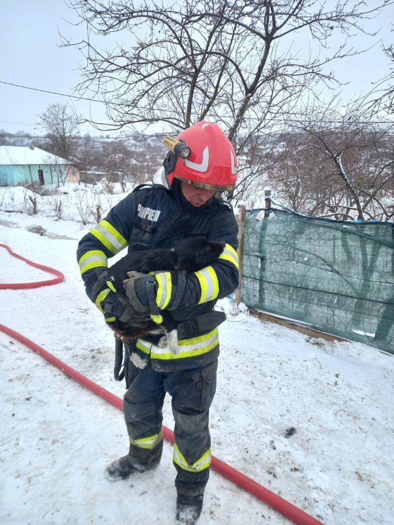 Aceștia au constatat că locuința ardea în totalitate și au intervenit rapid pentru a limita extinderea flăcărilor la celelalte construcții din gospodărie. Pompierii au eliminat pericolul de explozie, din interior fiind scoasă o butelie. Totodată, au salvat trei porci, o vacă și un câine.