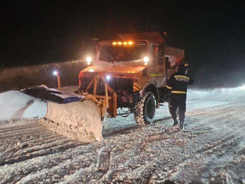 În ultima oră, s-au înregistrat alte patru apeluri din partea unor cetățeni care nu pot înainta pe drumurile comunale, județene sau naționale din cauza zăpezii, astfel: