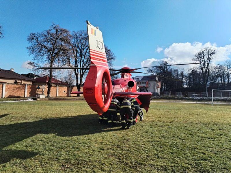 Elicopterul SMURD a fost solicitat duminică, 28 ianuarie 2024, pentru a prelua un bărbat, în vârstă de 82 de ani, din Dorohoi.