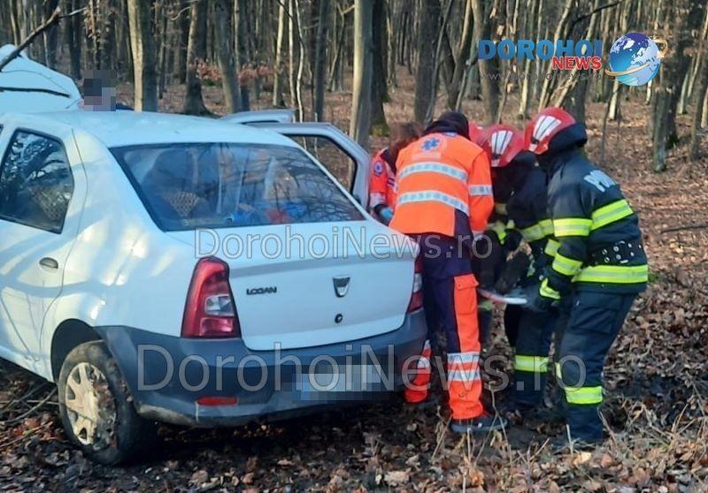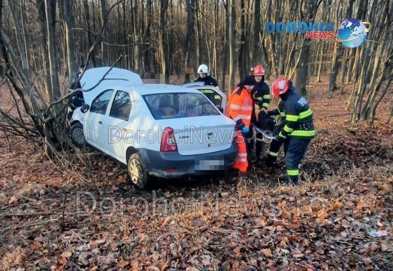 În accident a fost implicată o șoferiță, în vârstă de 75 de ani, la volanul unui autoturism Dacia Logan, după localitatea Horlăceni, în pădurea Gorovei. În mașină se aflau un bărbat și o femeie, soț și soție. Aceasta a pierdut controlul volanului, într-o curbă, a ieșit de pe carosabil și s-a izbit într-un copac.