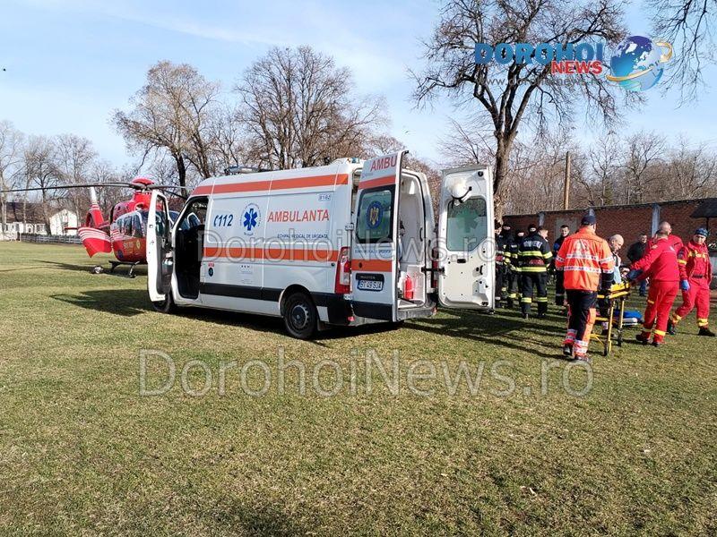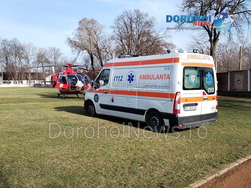 Elicopterul SMURD a fost solicitat marți, 27 februarie 2024, pentru a prelua un bărbat, în vârstă de 76 de ani, din Darabani.