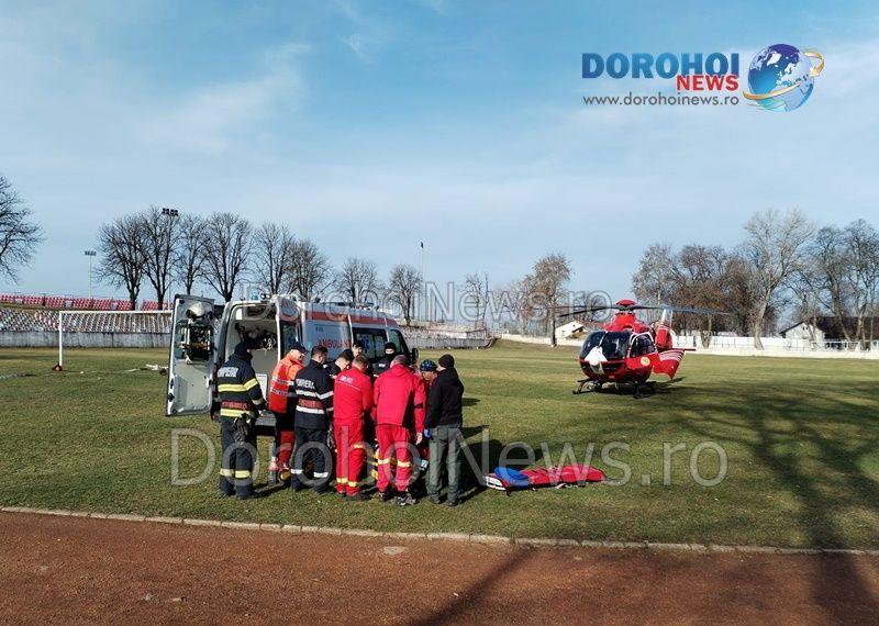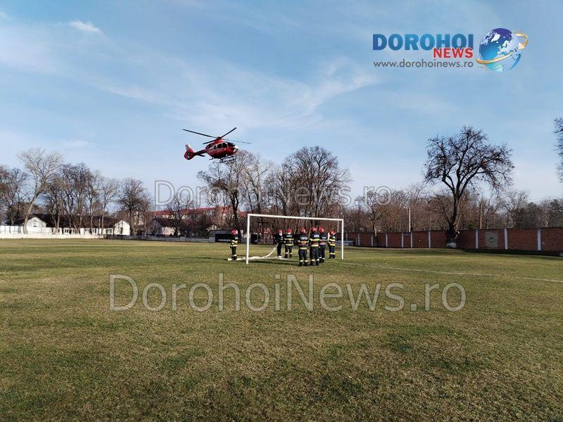 Pompierii dorohoieni au fost solicitați pentru a asigura zona în care a aterizat elicopterul și anume suprafața terenului de fotbal din cadrul Bazei Sportive „1 Mai” Dorohoi. Aceștia s-au deplasat prompt la fața locului și au dispus toate măsurile corespunzător procedurilor.