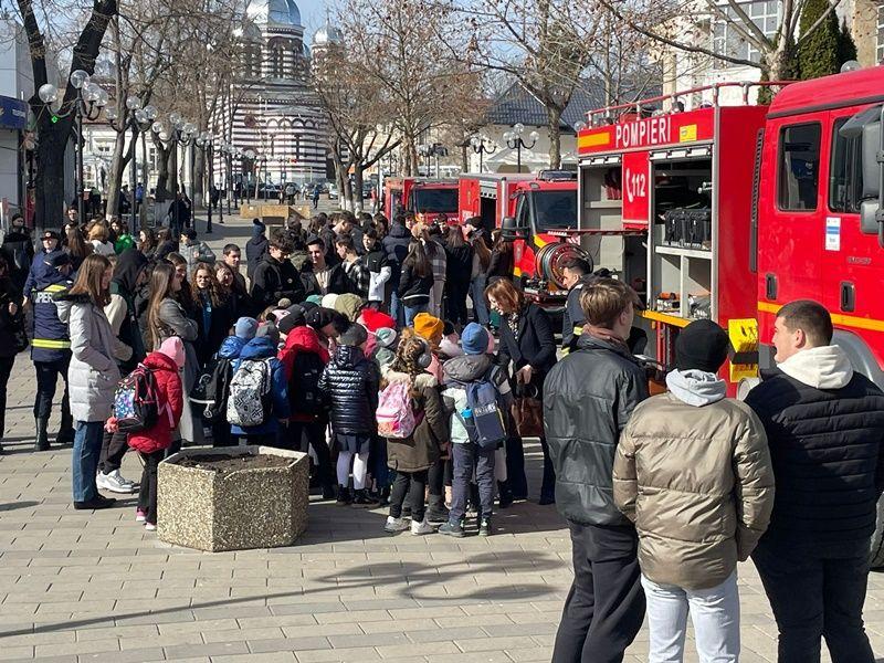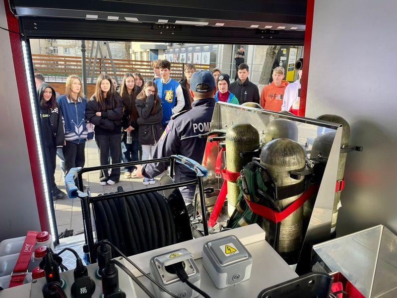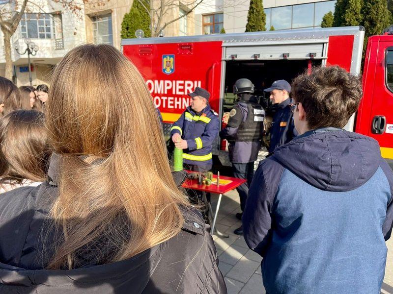 Încă de la primele ore ale dimineții, Pietonalul Ghica din municipiul Dorohoi s-a umplut de elevi și cadre didactice de la Colegiul Național „Grigore Ghica”, Liceul „Regina Maria” și Școlile Gimnaziale nr. 1, 2, 5, 7 și 8, curioși să vadă îndeaproape autospeciala hidroperforare, pirotehnică, de descarcerare, șenilata, kit-ul de salvare din fântâni și sistemul nocturn de iluminat.