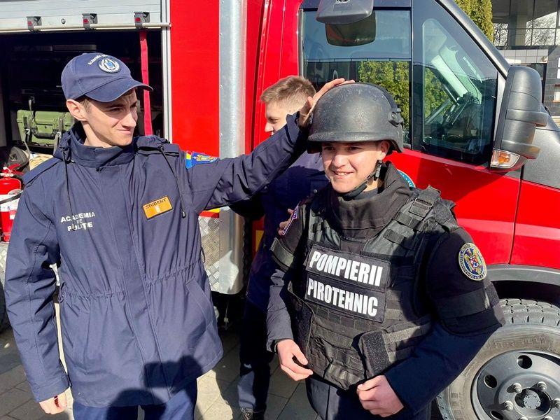 Studenții Facultății de Pompieri din cadrul Academiei de Poliție „Alexandru Ioan Cuza” București le-au explicat liceenilor pașii care trebuie urmați pentru a îmbrățișa meseria de salvator și le-au împărtășit din experiențele personale.