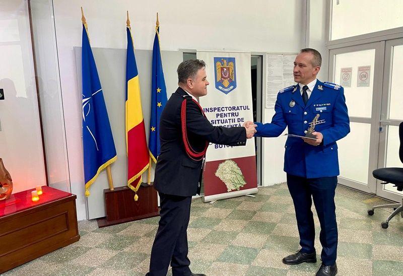 Cu prilejul Zilei Protecției Civile din România, patru pompieri botoşăneni, care au obţinut rezultate foarte bune în îndeplinirea atribuţiilor de serviciu, au fost înaintaţi în gradul următor, înaintea expirării stagiului minim.
