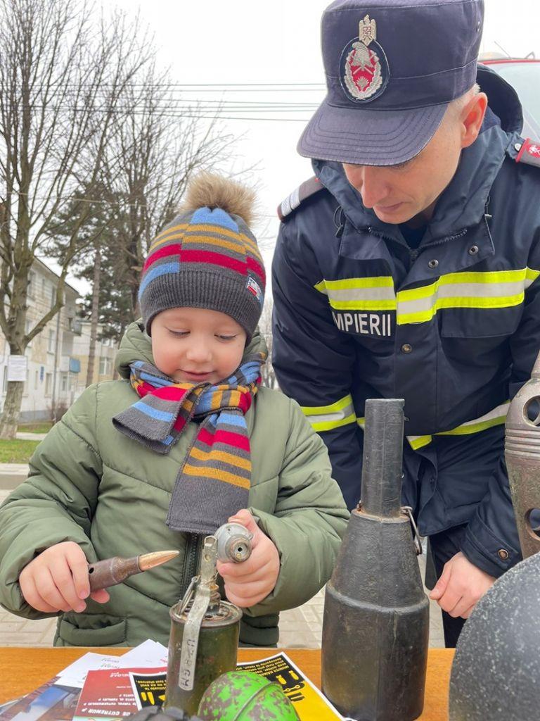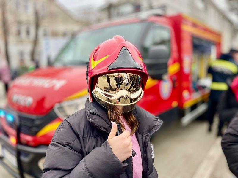 Pe pietonalul din fața Primăriei Orașului Săveni au avut ocazia să studieze cele mai noi autospeciale din dotarea ISU Botoșani: hidroperforare, pirotehnică și de descarcerare și au aflat cum se folosește fiecare accesoriu, în parte. Pe rând, copiii au probat costumul de protecție al pirotehnicienilor sau al servanților și au urcat în autospeciale.