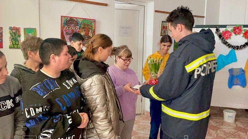 Ziua Internațională a Femeii a fost marcată și în centrele de îngrijire și asistență a persoanelor cu dizabilități acolo unde un gest simbolic a reușit să aducă zâmbete pe chipurile doamnelor care beneficiază de aceste servicii. Și asta pentru că pompierii botoșăneni le-au oferit, în numele tuturor colegilor din județ, câte o floare, o felicitare și surpriză dulce.