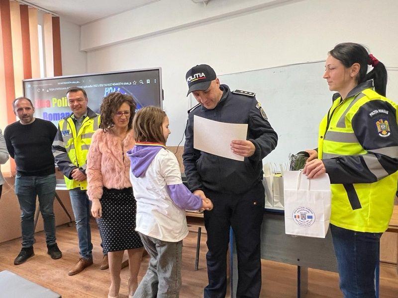 Astfel, polițiștii criminaliști și polițiștii rutieri au oferit copiilor ocazia de a observa tehnica și autospecialele pe care le folosesc în misiuni, apoi, cei mici au participat la un concurs pe teme specifice.