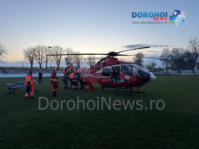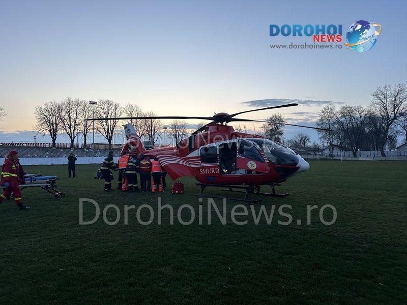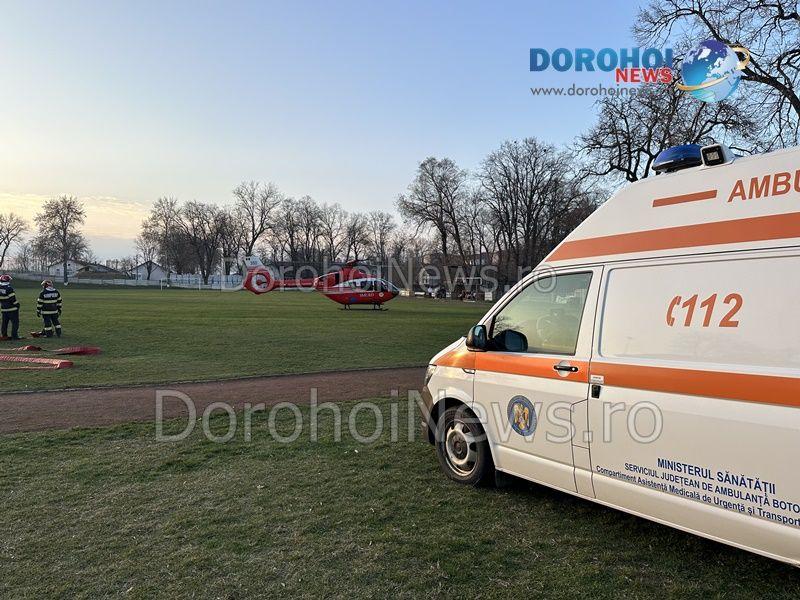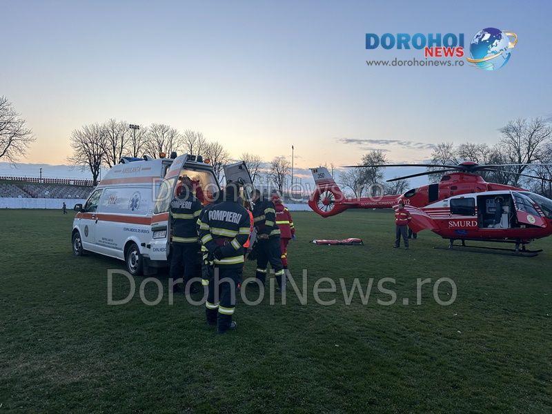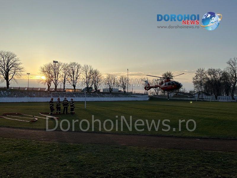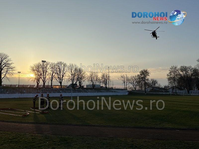 Pompierii dorohoieni au fost solicitați pentru a asigura zona în care a aterizat elicopterul și anume suprafața terenului de fotbal din cadrul Bazei Sportive „1 Mai” Dorohoi. Aceștia s-au deplasat prompt la fața locului și au dispus toate măsurile corespunzător procedurilor.