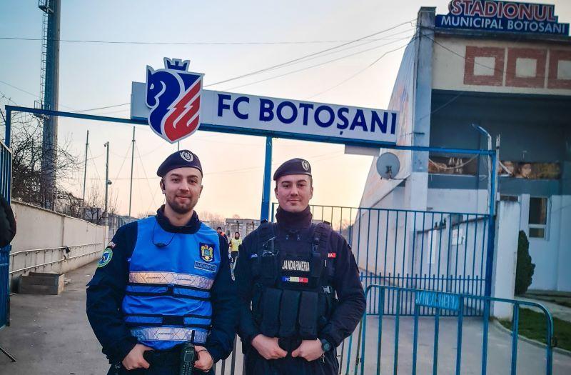 Dispozitivul integrat de ordine și siguranță publică constituit de jandarmii din cadrul Grupării Mobile Bacău și Inspectoratului Județean Botoșani, polițiști, pompieri și polițiști locali botoșăneni, precum și agenți de securitate, are ca scop asigurarea unui climat optim de securitate în zona arenei sportive și pe traseele de deplasare a suporterilor.