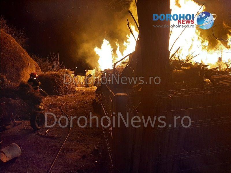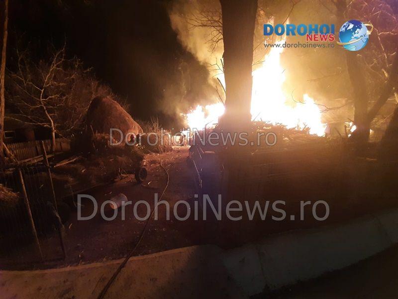 La locul indicat s-au deplasat trei autospeciale cu apă şi spumă din cadrul Detașamentului de Pompieri Dorohoi. La sosirea gărzii de intervenție, incendiul se manifesta violent la mai multe anexe gospodărești, respectiv bucătărie de vară, grajd și adăposturi de animale, cu posibilitate de extindere la depozitele de furaje și la casele din imediata apropiere.