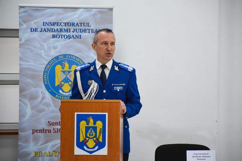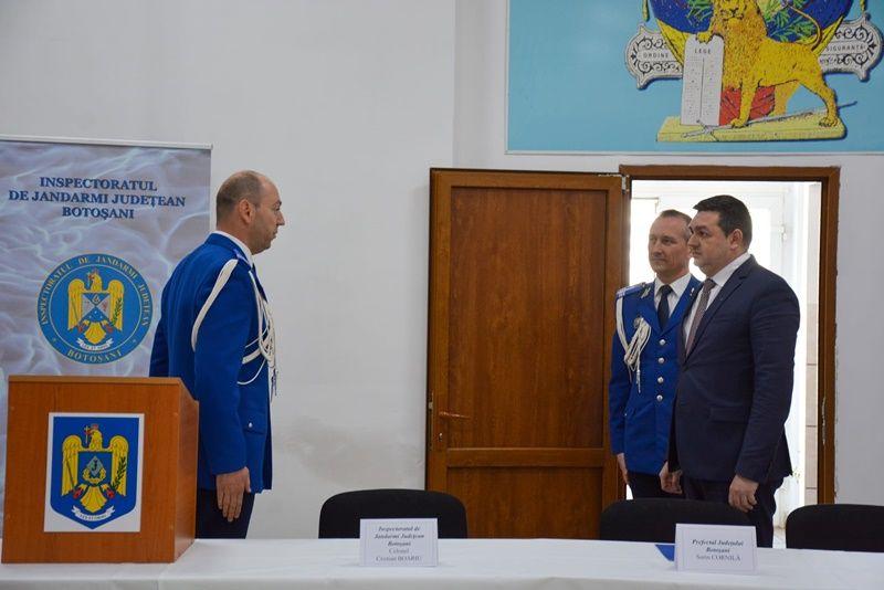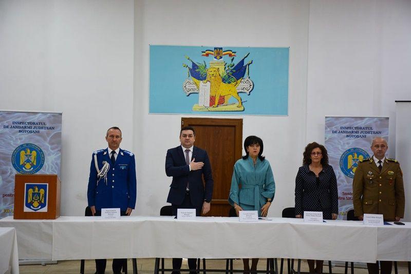 Manifestarea festivă dedicată acestui moment istoric s-a desfășurat la sediul Inspectoratului de Jandarmi Județean Botoșani, în prezența domnului Sorin Cornilă - prefectul județului Botoșani, doamnei Doina Elena Federovici - președintele Consiliului Județean Botoșani, doamnei Cristina Breșug - președintele Autorității Teritoriale de Ordine Publică și șefilor instituțiilor publice cu care inspectoratul cooperează în atingerea obiectivelor specifice.