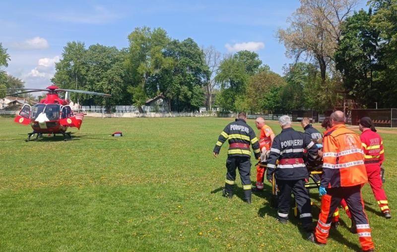 Femeia care a suferit un AVC hemoragic, a fost intubată iar medicii au solicitat elicopterul SMURD care să o transfere la o clinică de specialitate din Iași.
