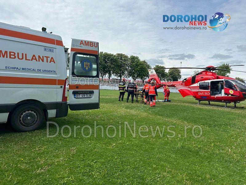 Din primele informații, bărbatul s-a simțit rău și a fost solicitat ajutorul cadrelor medicale. Acesta a ajuns la Spitalul Municipal Dorohoi unde medicii l-au diagnosticat cu inferct miocardic acut. Medicii l-au stabilizat și au solicitat elicopterul SMURD care să îl transfere la o clinică de specialitate din Iași.