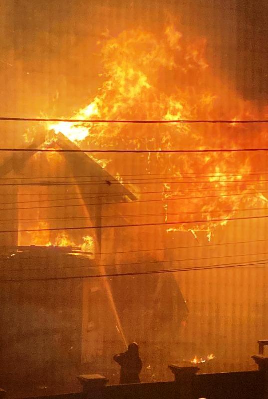 Un vecin a sunat după ajutor, în timp ce proprietarul a încercat să limiteze pagubele și a scos din interiorul casei o butelie.