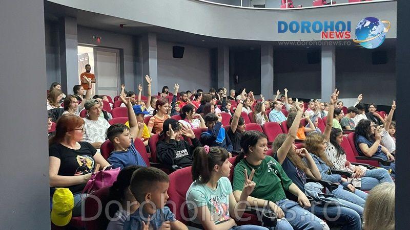 După discursul ținut de actorul Vlad Baba, atmosfera devenise una relaxantă, perfectă pentru începerea filmului de acțiune. Cei mici erau captați de intrigă, zâmbetele aparând pe fețele lor.