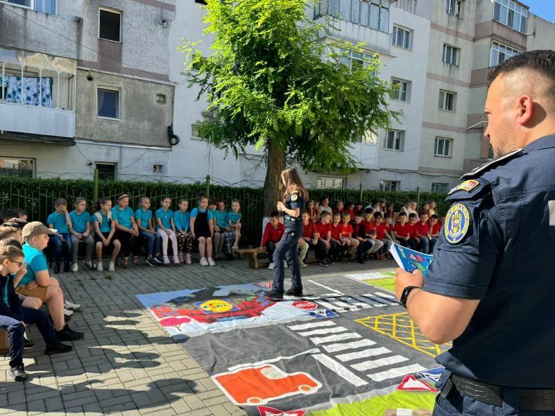 Polițiștii le-au prezentat copiilor regulile de circulație și importanța respectării acestora pentru prevenirea implicării în evenimente rutiere nedorite.
