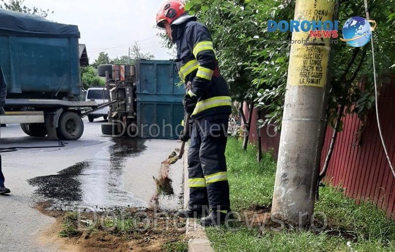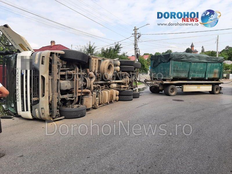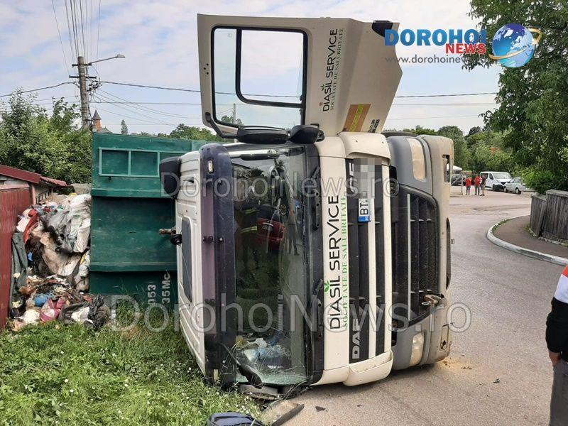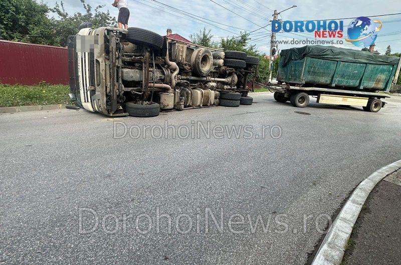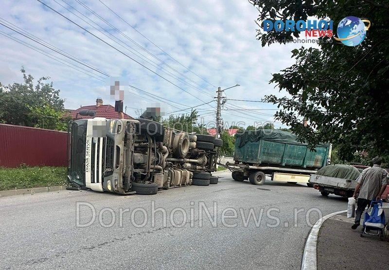Un accident rutier s-a produs miercuri, 12 iunie 2024, pe strada Luceafărul din municipiul Dorohoi. În eveniment a fost implicat un camion care transporta deșeuri.