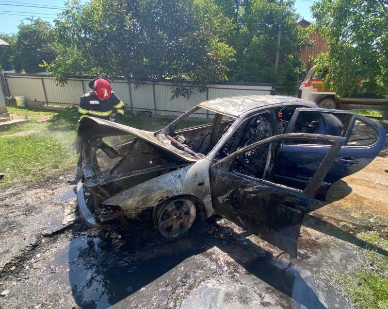 O mașină parcată într-o gospodărie din localitatea Chiscovata a luat foc, în dimineața zilei de 17 iunie 2024. Flăcările au observate de proprietar, care a sunat după ajutor, la 112.