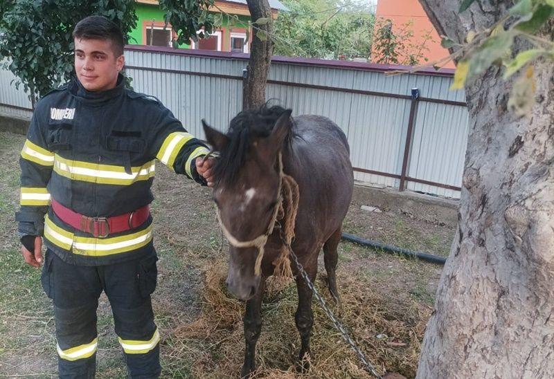 Chemați în ajutor, pompierii din cadrul Punctului de Lucru Darabani și Serviciul Voluntar pentru Situații de Urgență Hudești au legat calul cu mai multe furtunuri și cu ajutorul kit-ului de salvare au reușit să îl scoată din captivitate.