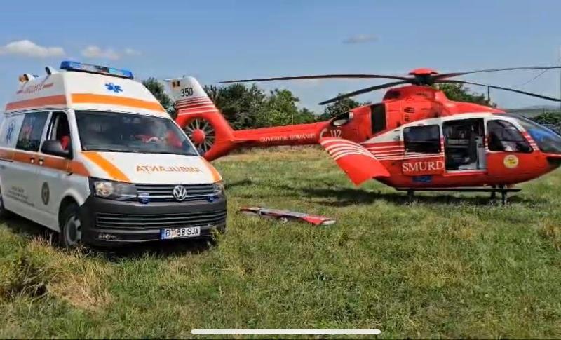 A fost solicitat și elicopterul SMURD Iași. Acesta a aterizat pe un teren viran de lângă fabrică.