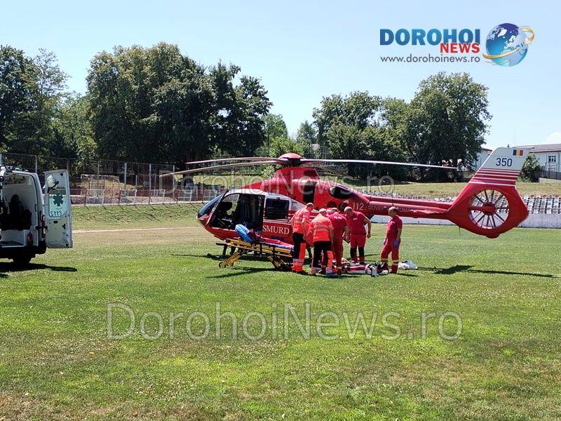 Din primele informații, bărbatul s-a simțit rău și a fost solicitat ajutorul cadrelor medicale. Acesta a ajuns la Spitalul Municipal Dorohoi unde medicii l-au diagnosticat cu infarct miocardic acut. Medicii l-au stabilizat și au solicitat elicopterul SMURD care să îl transfere la o clinică de specialitate din Iași.