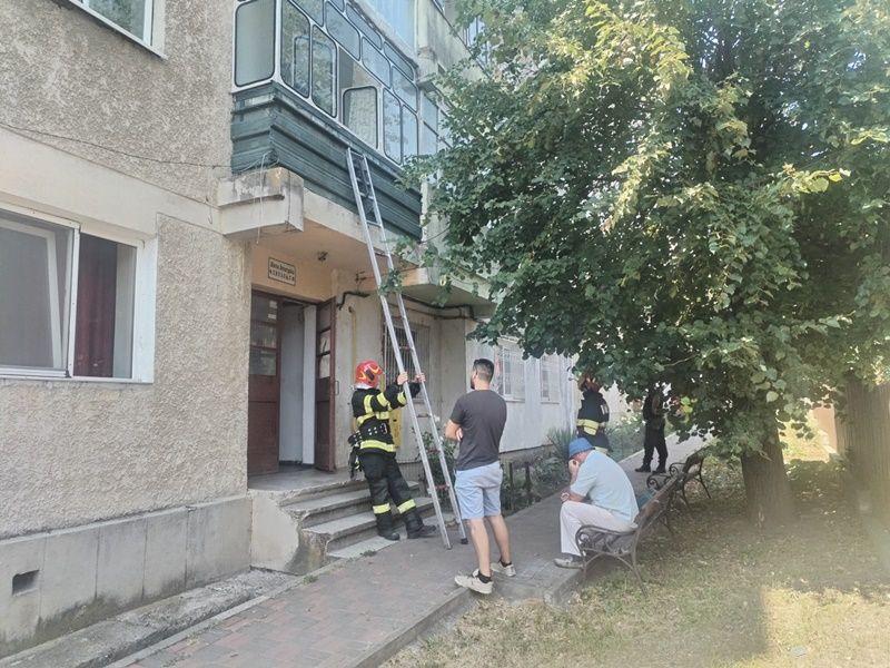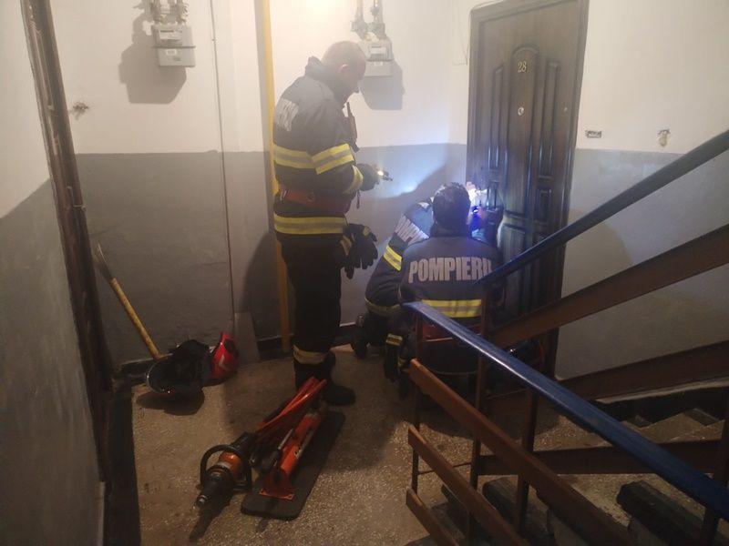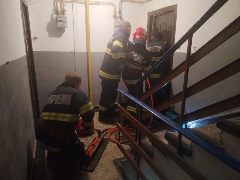 Pompierii au urcat prin abalcon cu o scară, dar nu au putut debloca ușa metalică și a fost forțată, cu acordul proprietarului. Femeia și copilul nu au nevoie de îngrijiri medicale.
