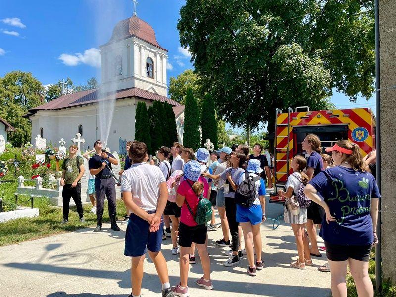 Peste 100 de copii și voluntari au petrecut ziua alături de pompieri la biserica „Adormirea Maicii Domnului” din Vorona Mare, în cadrul taberei de zi „Bucuria Prieteniei”.
