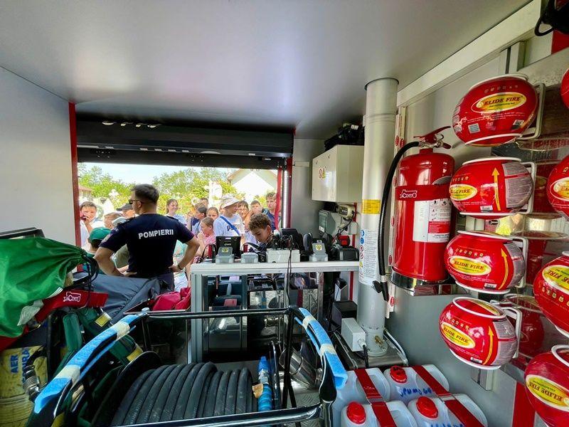 Pompierii din cadrul Detașamentului Botoșani le-au prezentat autospecialele de stingere cu apă și spumă și descarcerare, dar și cum se folosește fiecare accesoriu. Au probat echipamentele de protecție folisite de salvatori pe timpul misiunilor.