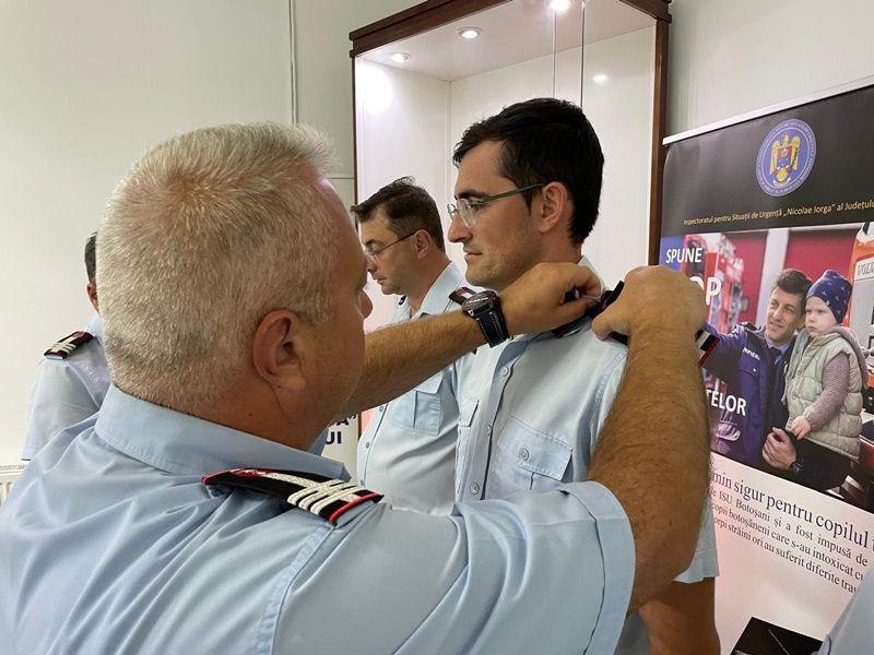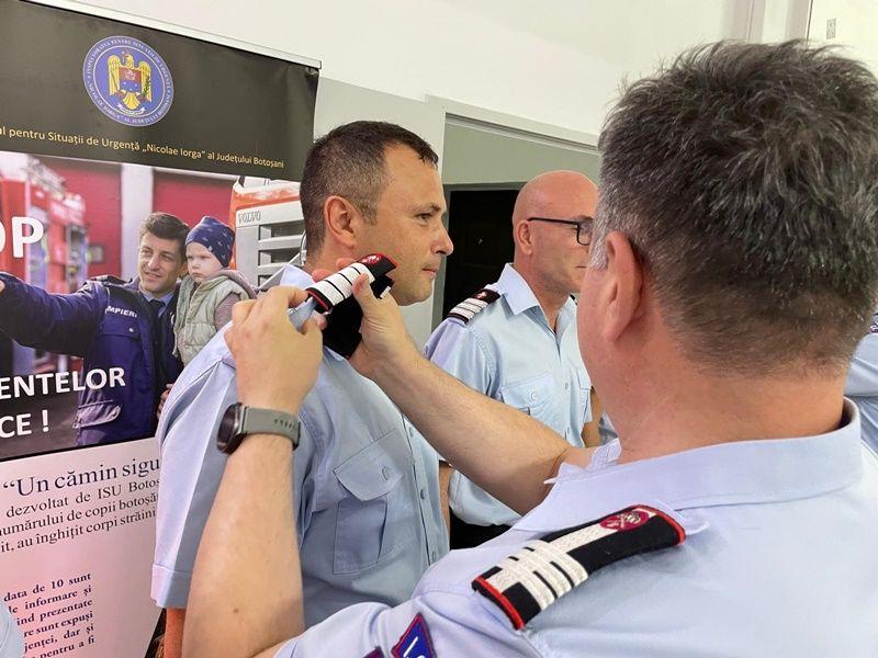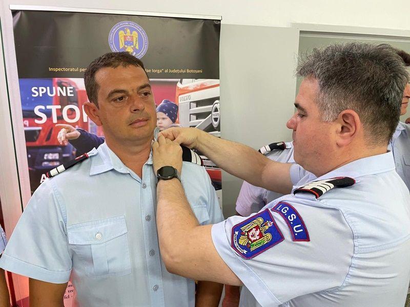 Anual, în prima zi din august, cadrele militare din Inspectoratul pentru Situații de Urgență „Nicolae Iorga” al Județului Botoșani, care îndeplinesc condițiile și au împlinit stagiul minim în grad, se înaintează în gradul militar următor, la termen.