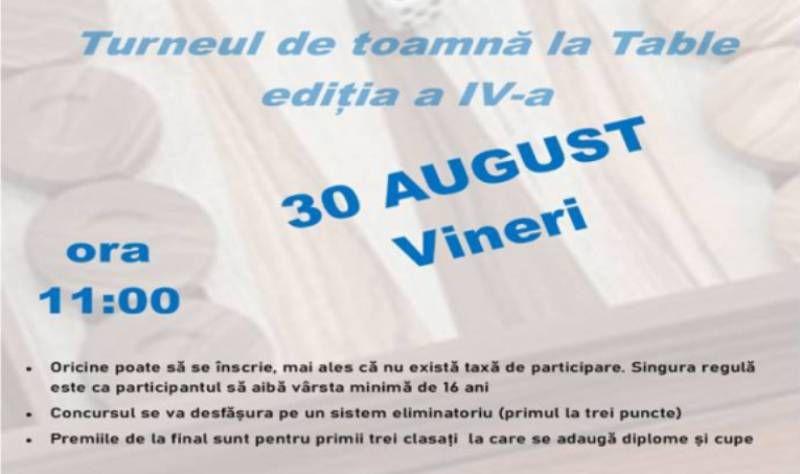 Pasionații jocului de table sunt invitați să participe la acest eveniment distractiv și să se întâlnească cu alți jucători. Participarea este gratuită, iar premiile sunt pregătite pentru primii trei clasați.