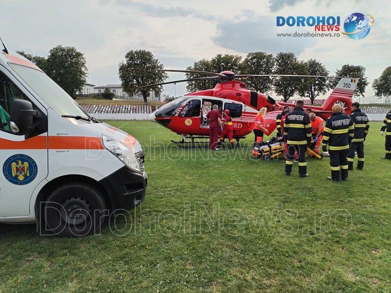 Elicopterul SMURD a fost solicitat vineri, 16 august 2024, pentru a prelua un bărbat, în vârstă de 61 de ani, din localitatea Miorcani, comuna Rădăuți-Prut.