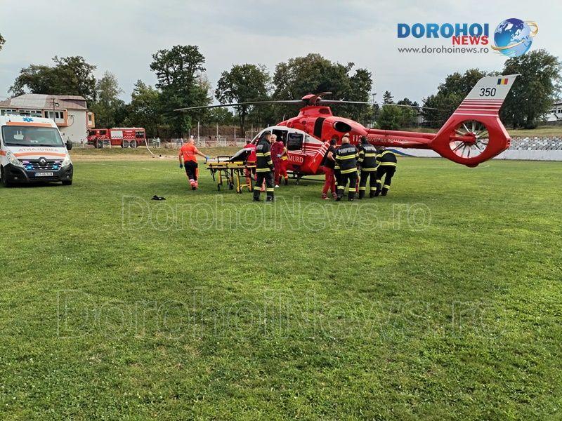 Pompierii dorohoieni au fost solicitați pentru a asigura zona în care a aterizat elicopterul și anume suprafața terenului de fotbal din cadrul Bazei Sportive „1 Mai” Dorohoi. Aceștia s-au deplasat prompt la fața locului și au dispus toate măsurile corespunzător procedurilor.